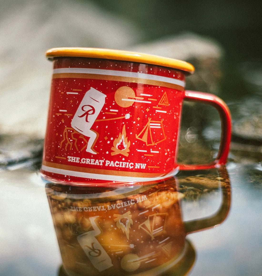 Enjoy your camp-side beer in true PNW style with our lightweight 16oz enamel mug.