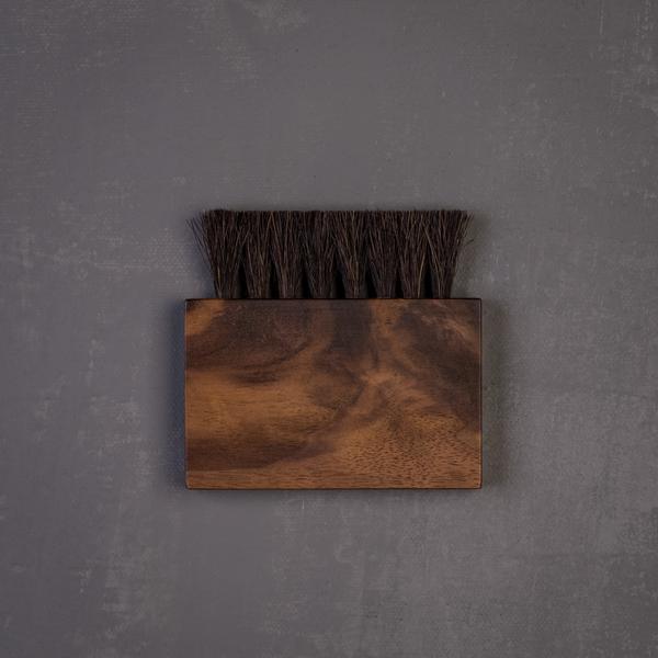 Own a felt hat? Nothing keeps it healthier than regular brushing with a good quality brush. Our pals at Big D Speedshop worked with a brush maker in Santa Fe to develop one that doesn't just get the job done, but is also as beautiful as it is functional. Each is made by hand, one at a time, from the finest American Walnut and domestic horsehair. Shipped with a lined Serape pouch made by Big D himself right in their sweatshop.