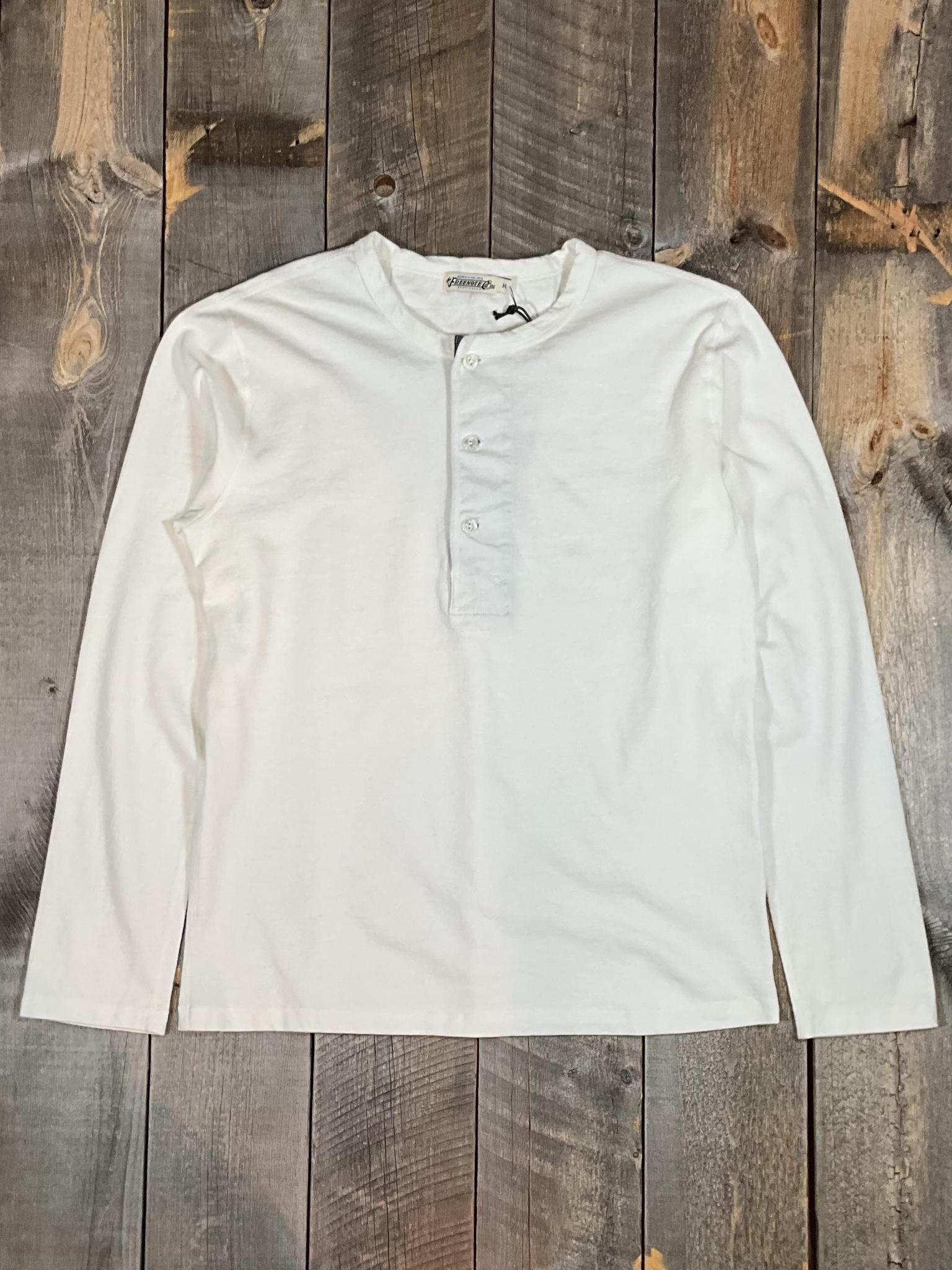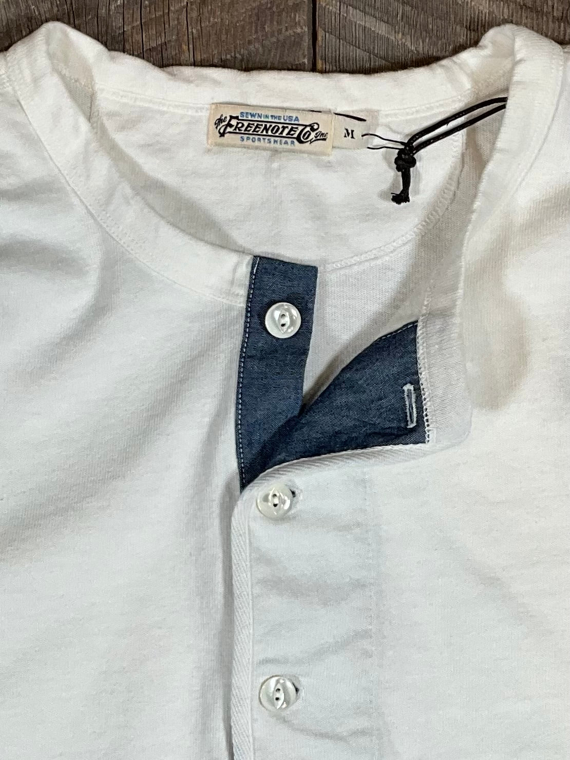 Expertly crafted with custom open ended 13 ounce knit from USA and flat lock seam construction, this Henley Long Sleeve offers superior quality and comfort. Features custom mother of pearl fisheye buttons from Italy and 1/8" double needle hems. Contrast chambray on interior placket, cotton binding from Japan, and a custom label made in Italy add the perfect finishing touches. Available in Small, Medium, Large, and X-Large, each piece is individually sewn in the USA. Made with 100% cotton, this Henley Long Sleeve is a must-have staple in any wardrobe.