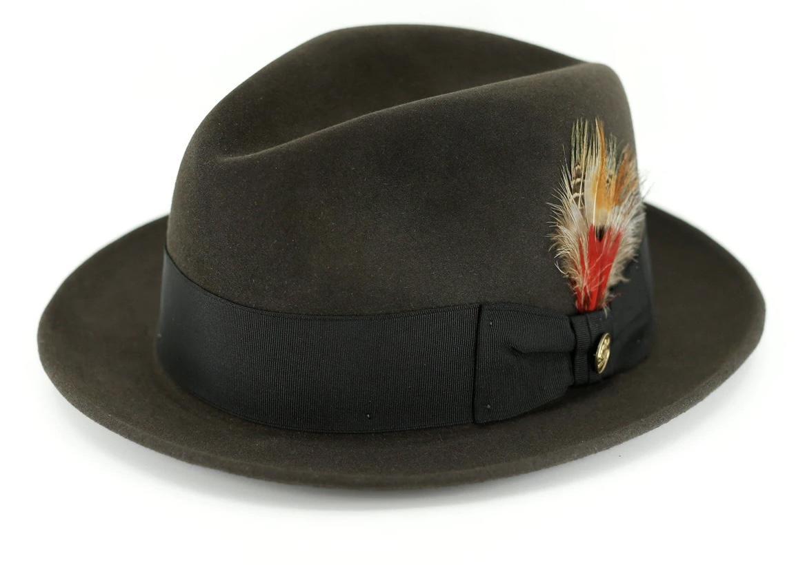 From Stetson’s Royal line comes the Saxon Royal Fur Felt Fedora Hat – the best selling hat from the premiere American hat company. Made of premium soft finish fur felt, the Saxon features a classic pinch crown and traditional two-inch underwelt snap brim. Wear the brim snapped down for a timeless Old Hollywood look or keep it snapped up for a more modern twist.