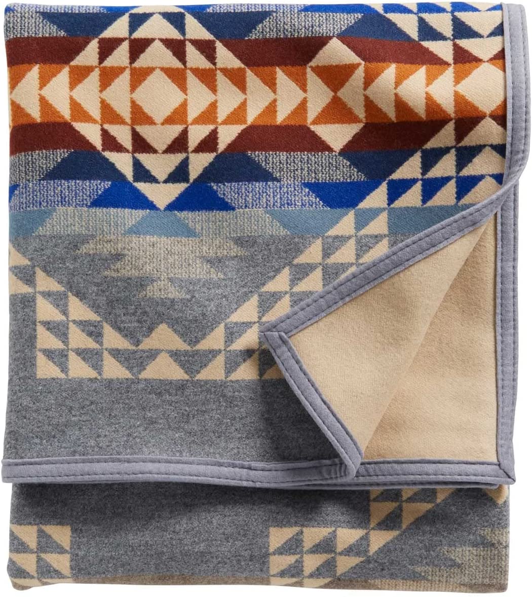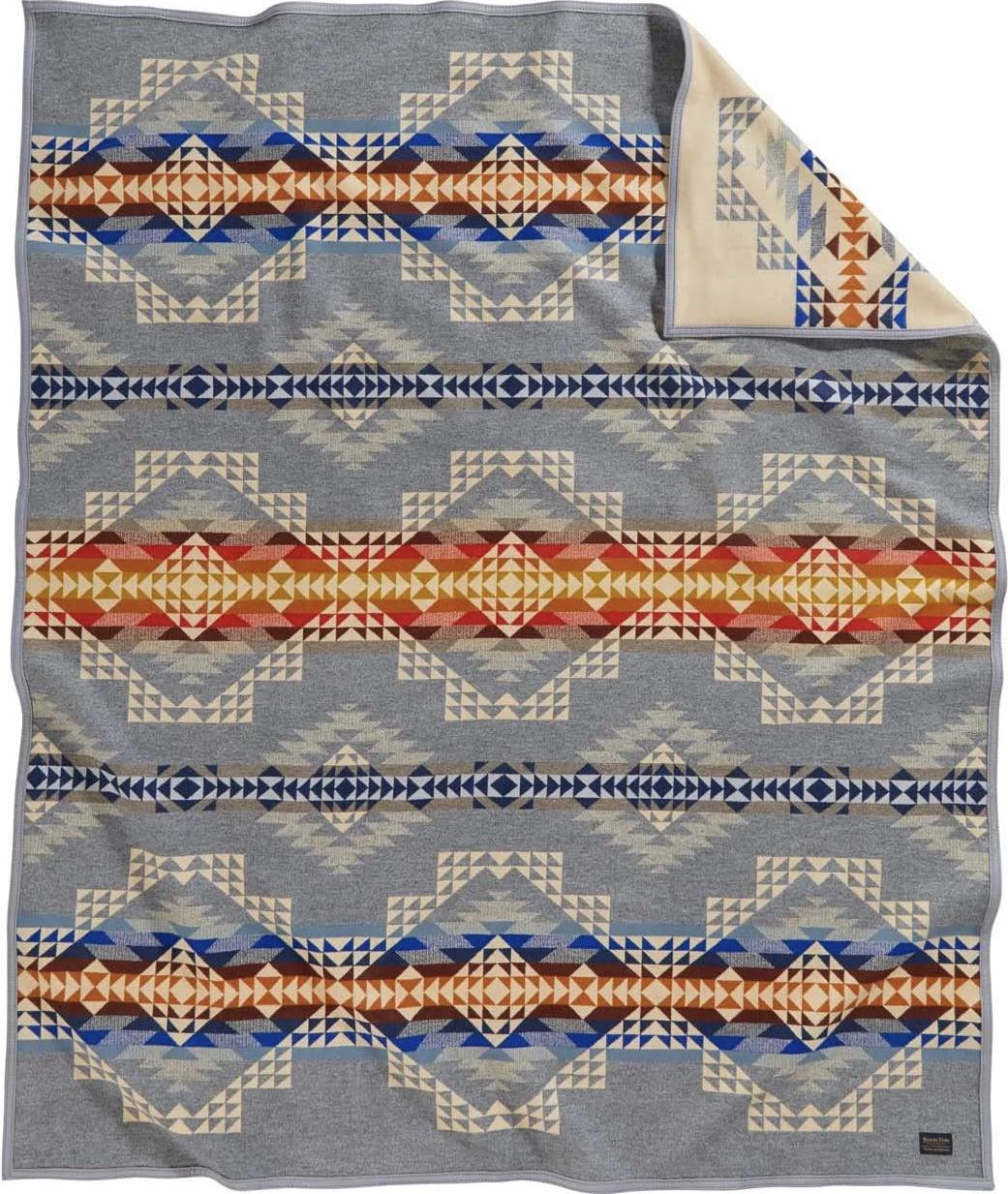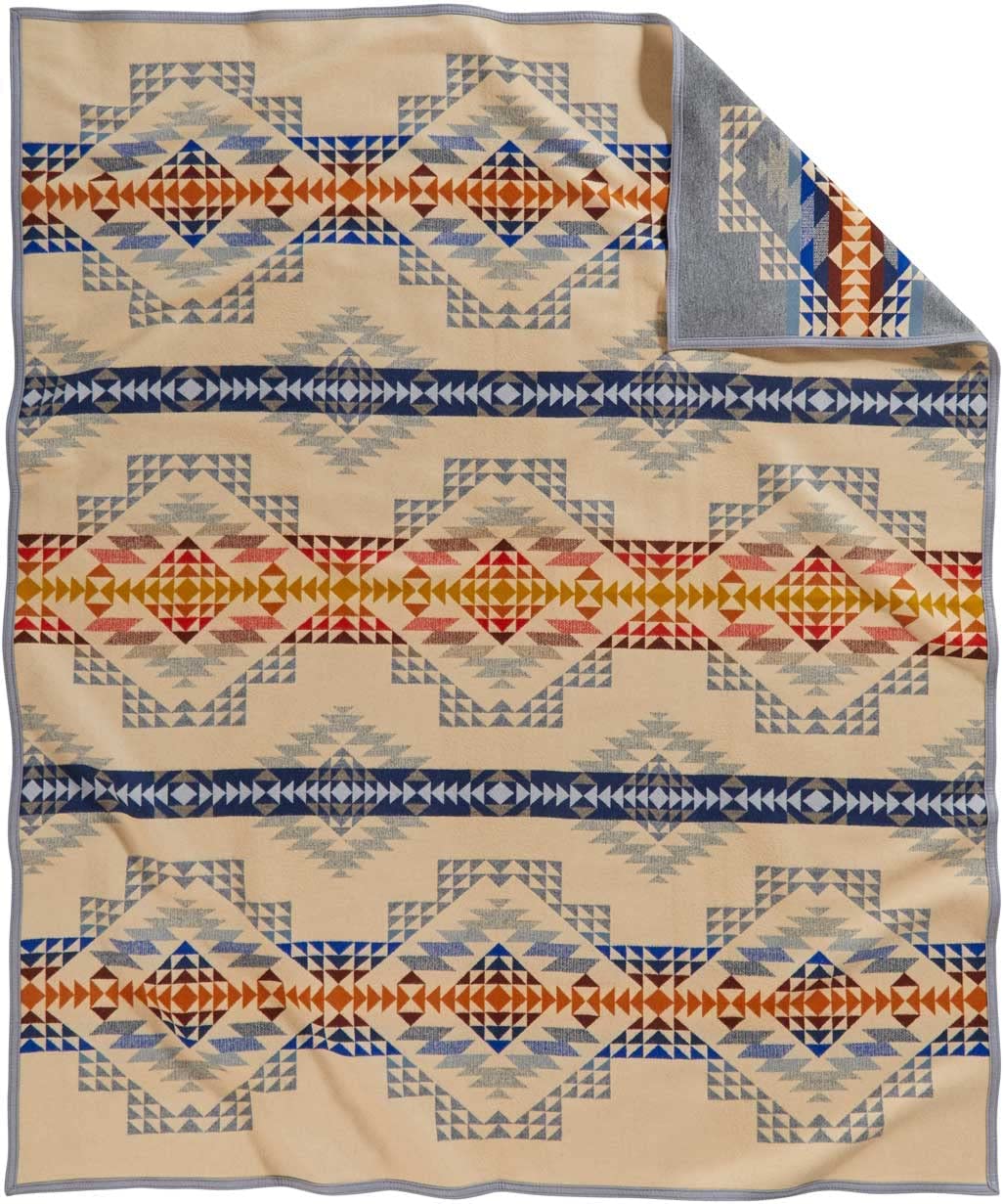 This wool blanket design echoes the towering rock face, geometric peaks, deep water canyons and hiking trails of Smith Rock State Park in Central Oregon—considered by many to be the birthplace of American sport climbing. Crafted to last a lifetime, this blanket is made just 200 miles away from Smith Rock, in our Pendleton, Oregon, mill. Reverses for two different looks.