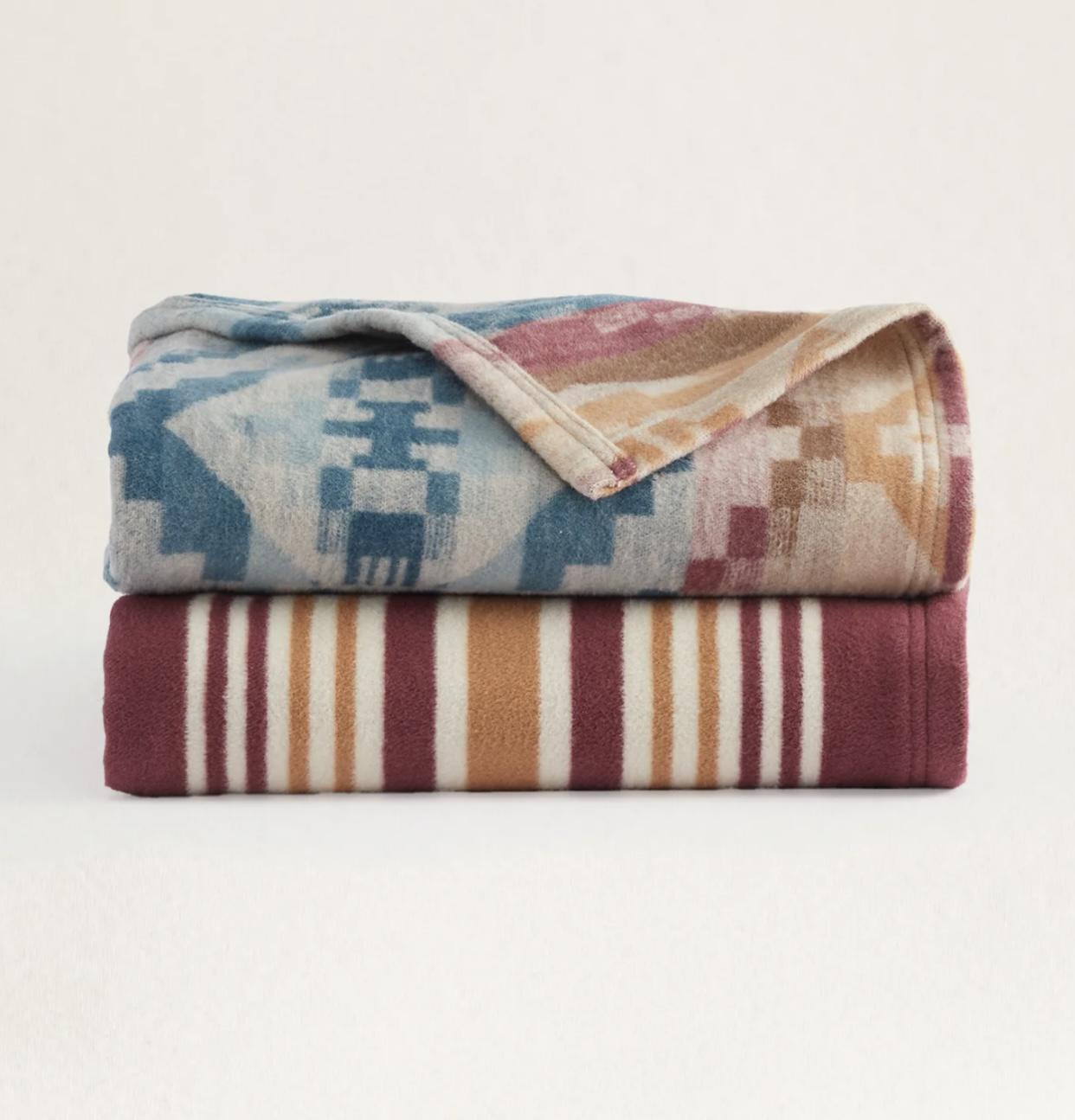 Ultra-soft cotton throws perfectly packaged for gifting. Loomed just for us in Germany, with the same superb quality and attention to detail as our wool blankets. Sustainably made according to OEKO-TEK guidelines and GOTS certified. Set of two includes one patterned throw, one striped throw, in complementary colors that can be mixed and matched.