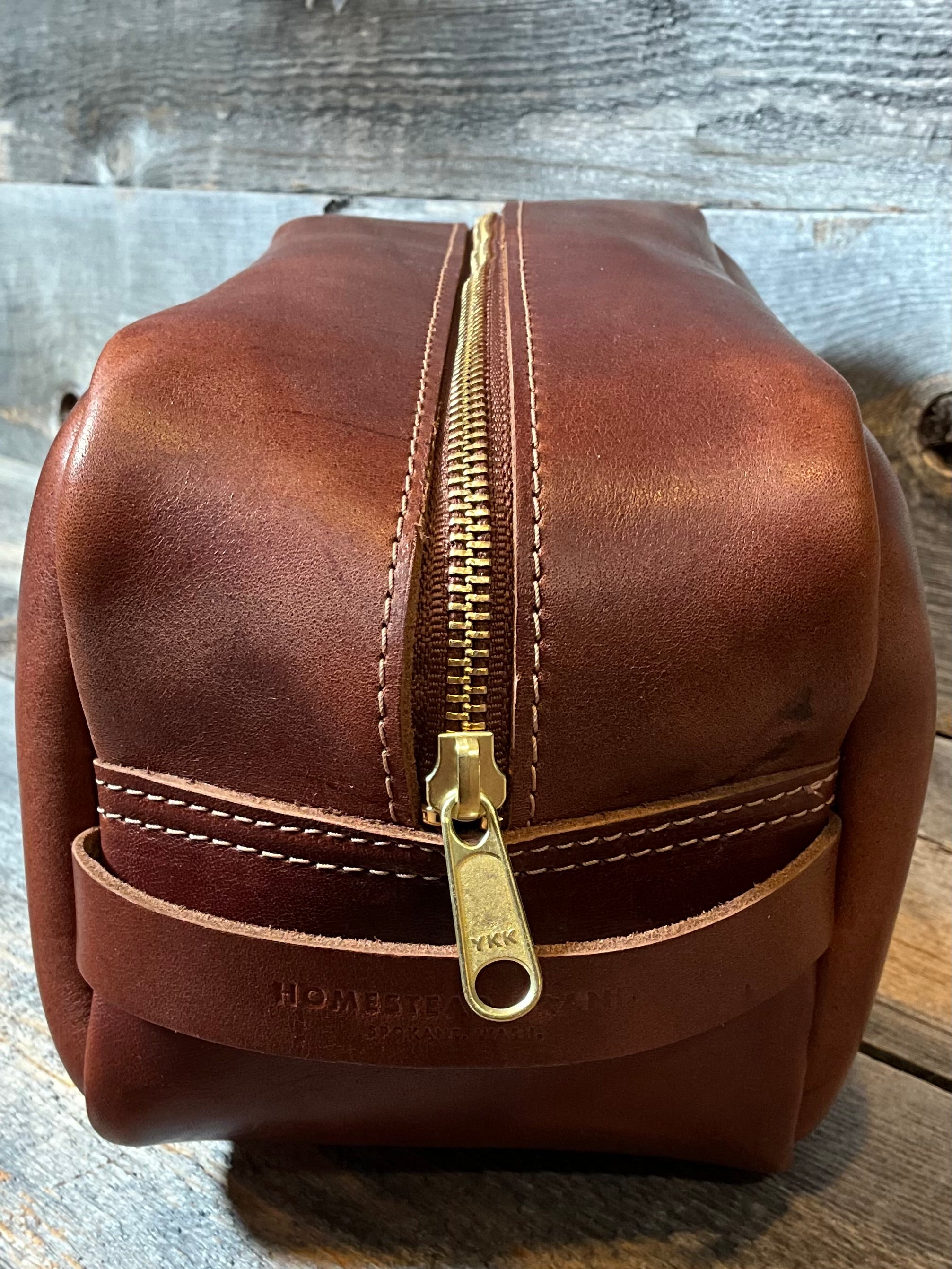 Crafted from premium 6oz USA tanned leather, the Standard Dopp Kit No. 2005 is a durable and timeless travel accessory. Its simplistic design and spacious interior provide easy access to your essentials. Made in Spokane, Wash. with a YKK brass zipper, this kit will upgrade your travel experience.