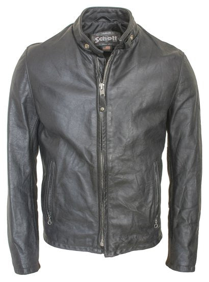 Simple meets supple in this modern, lightweight café racer jacket. Cut from buttery soft, broken-in cowhide leather, this 25” vintaged jacket keeps it minimal with a front zip closure and zippers at cuffs and side pockets. Inside you’ll find a silky polyester twill lining and a hidden pocket. The classic timelessness of this motorcycle jacket makes it an ideal pair to a basic tee or lightweight button-up shirt. Union made in the USA.