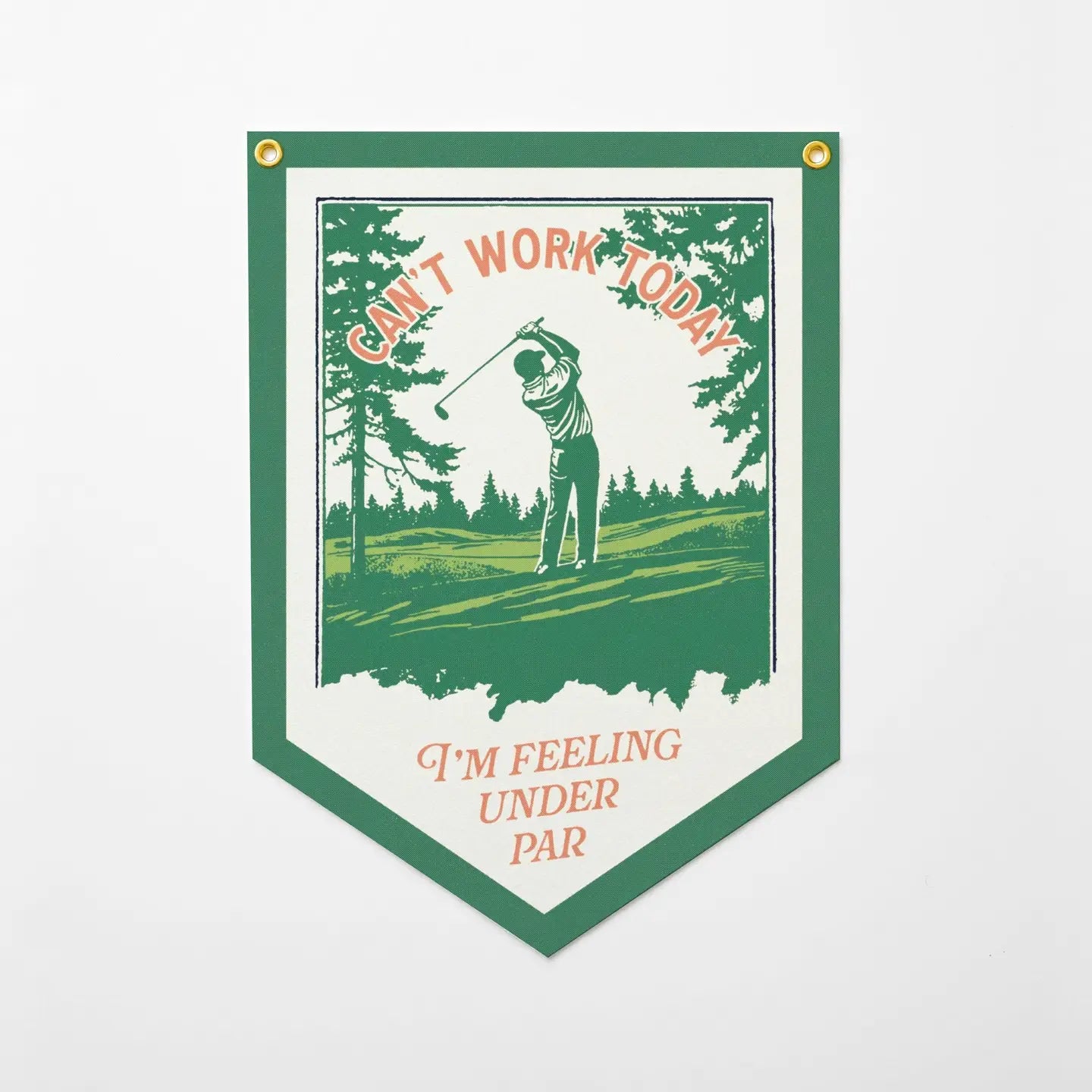 Trade the office for the fairway with this vintage‑style “Can’t Work Today, I’m Feeling Under Par” felt camp flag. A lighthearted gift for the golfer who’s always looking for an excuse to tee off.