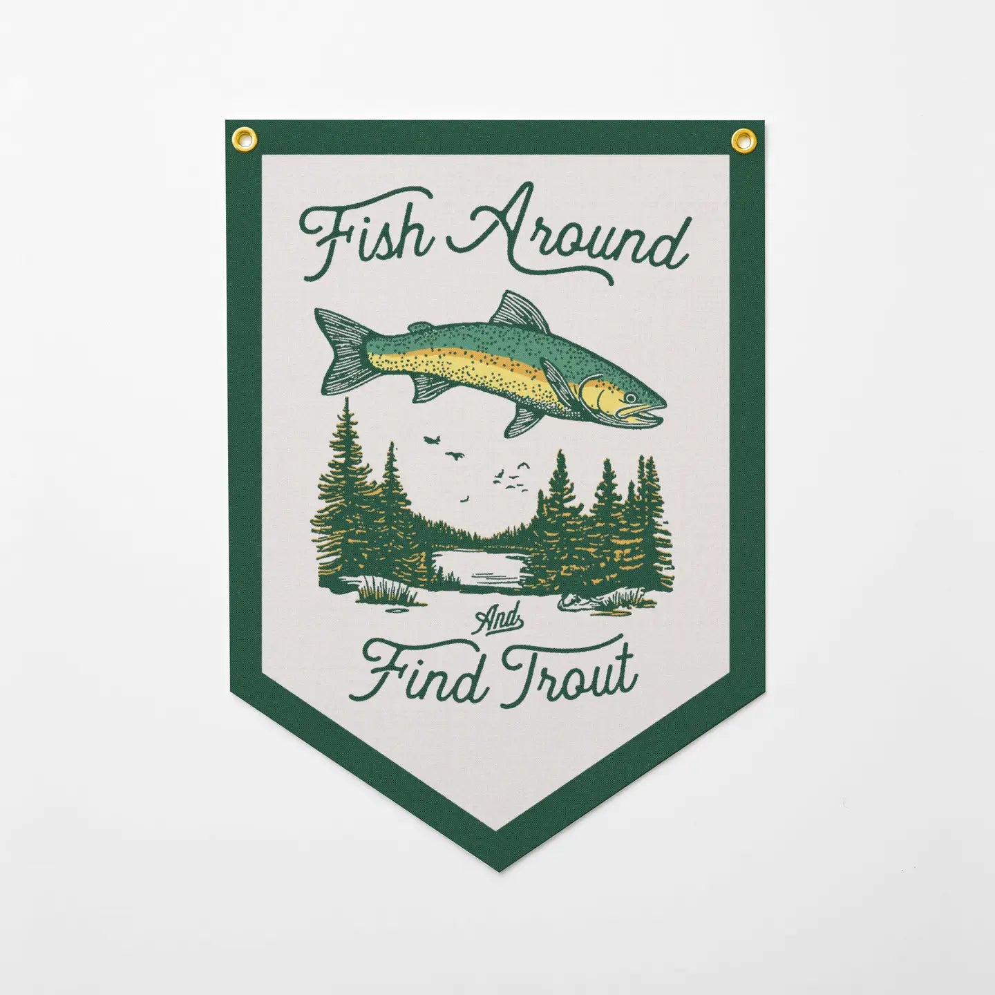 For the friend who’s forever “gone fishin’,” this vintage‑inspired “Fish Around and Find Trout” camp flag is a catch all its own. A playful nod to days spent on the water.