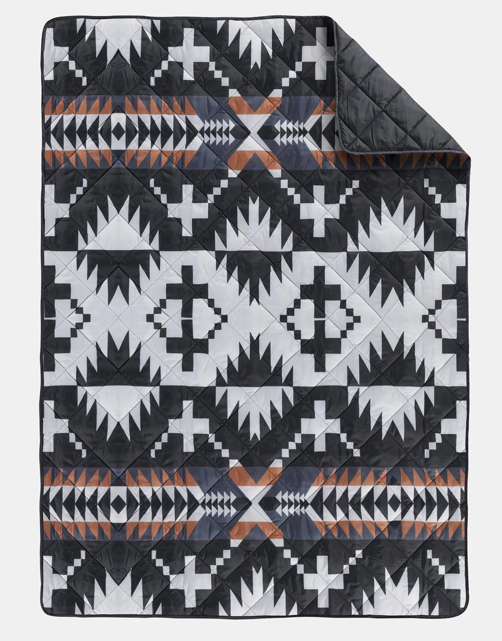 A go-anywhere, machine washable blanket in our Spider Rocks pattern, with a solid reverse. Includes stuff sack for easy toting. Made from recycled materials and lightly filled.