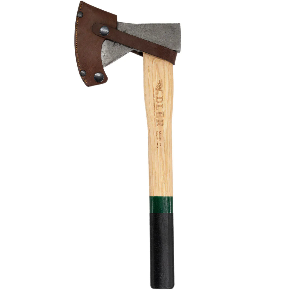 Axe head: Forged C 60 steel, hand sharpened and finished. Oiled for rust protection.