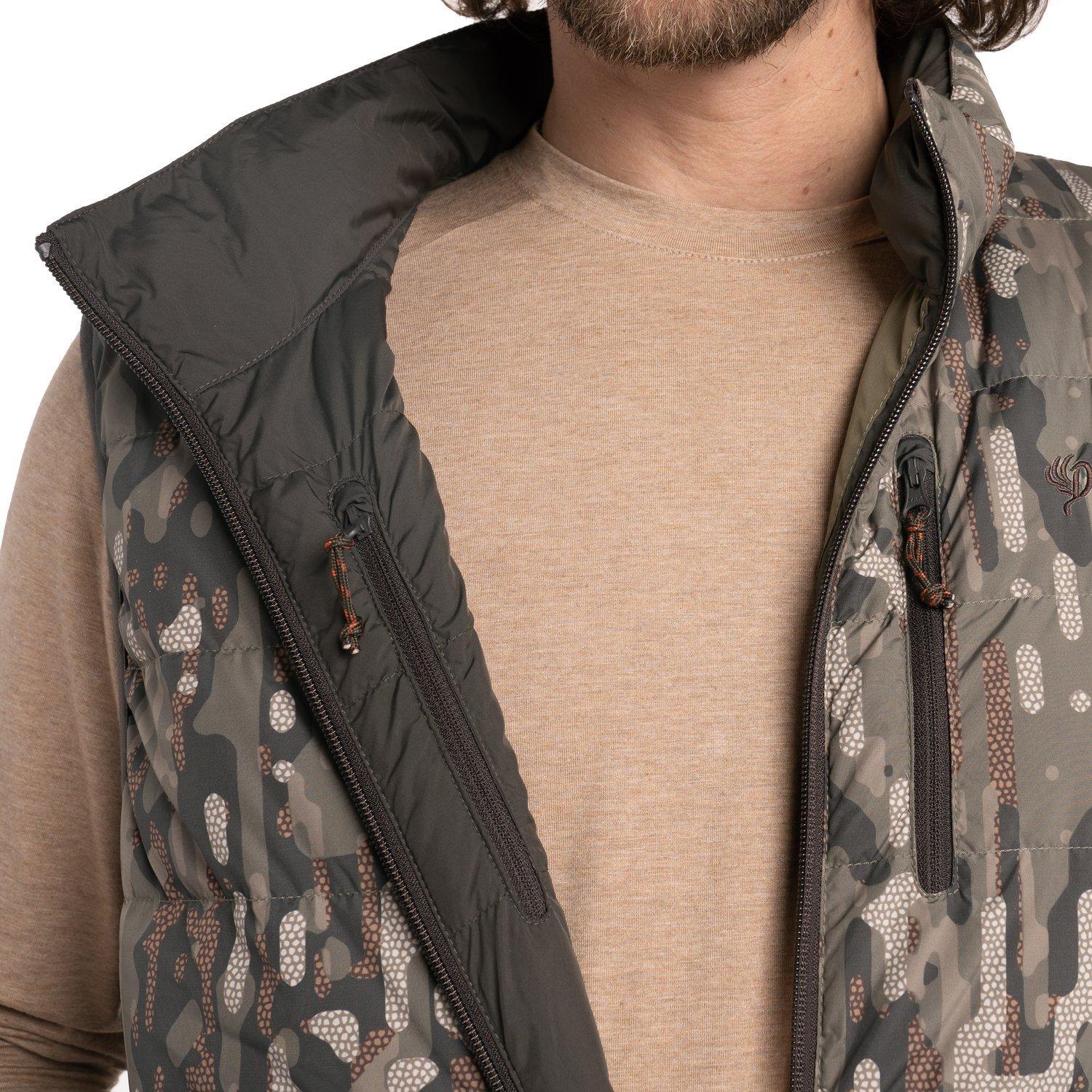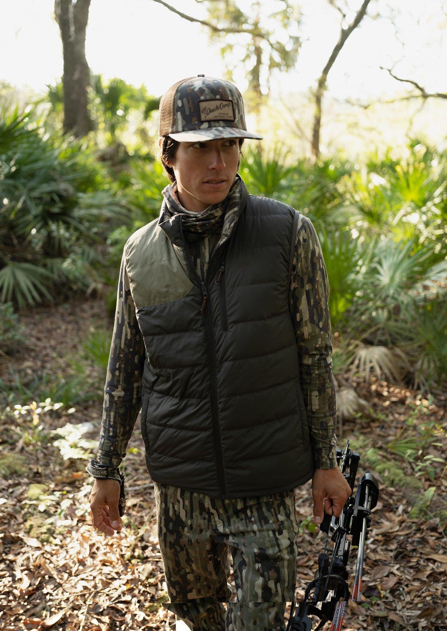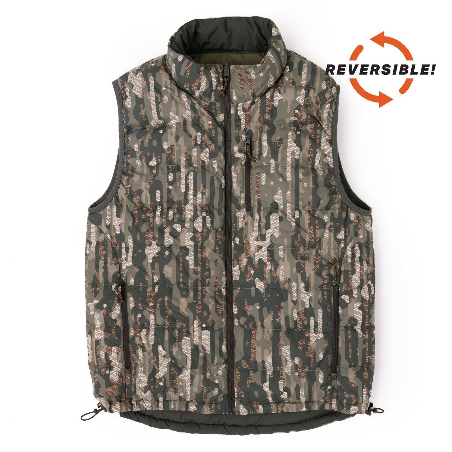 The ultimate hunting vest for cold weather. This reversible down vest features Woodland camo on one side and Pin Oak colorway on the other. A two-for-one that will take you from timber hunts to casual excursions. Lightweight, packable, and water resistant.