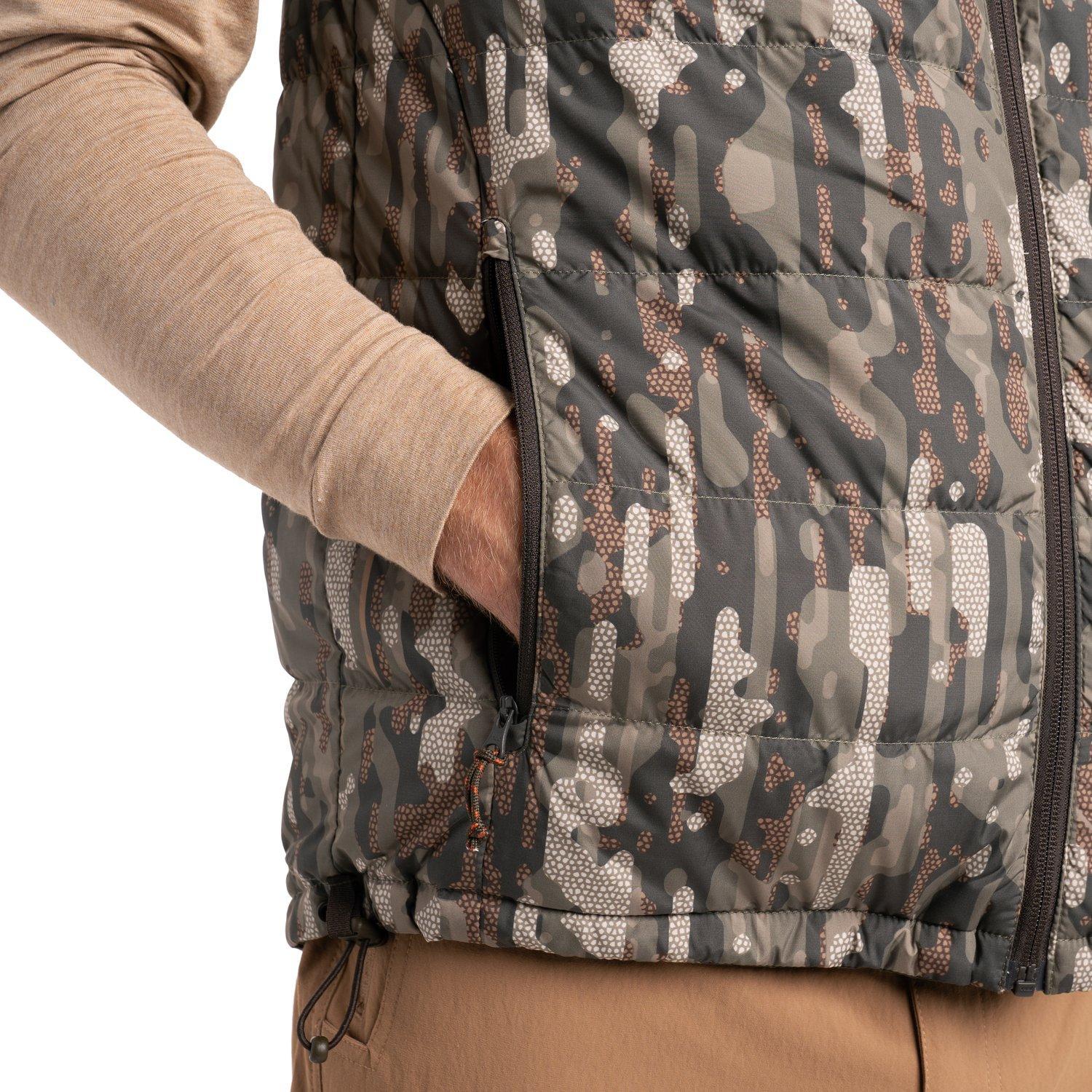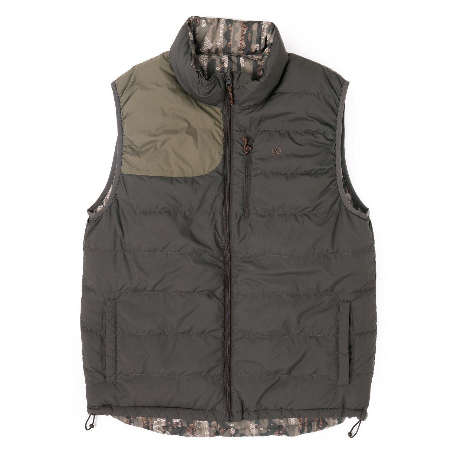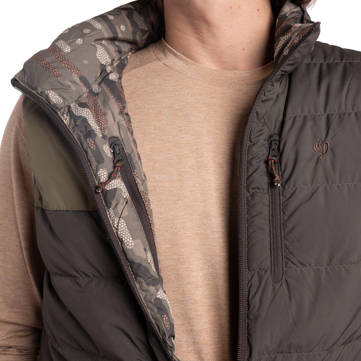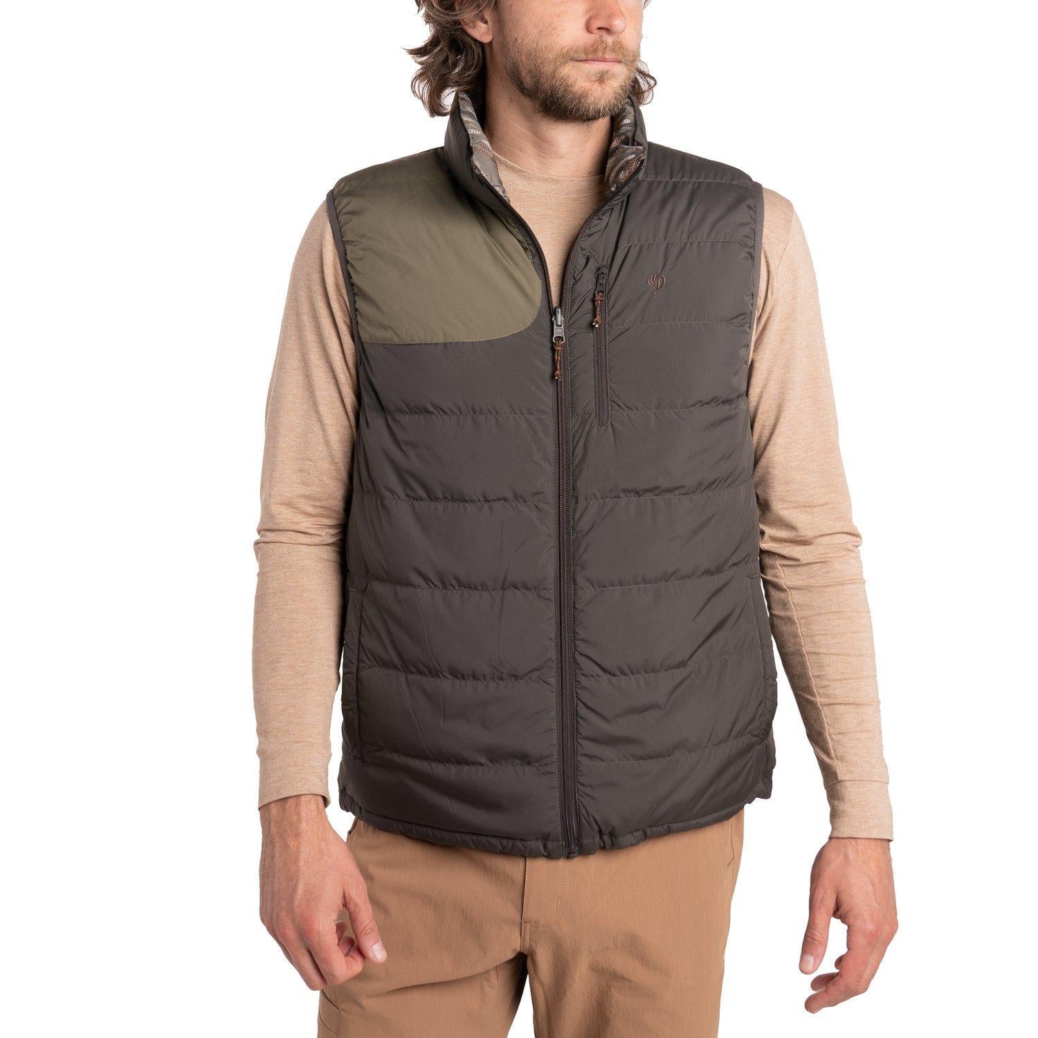The ultimate hunting vest for cold weather. This reversible down vest features Woodland camo on one side and Pin Oak colorway on the other. A two-for-one that will take you from timber hunts to casual excursions. Lightweight, packable, and water resistant.