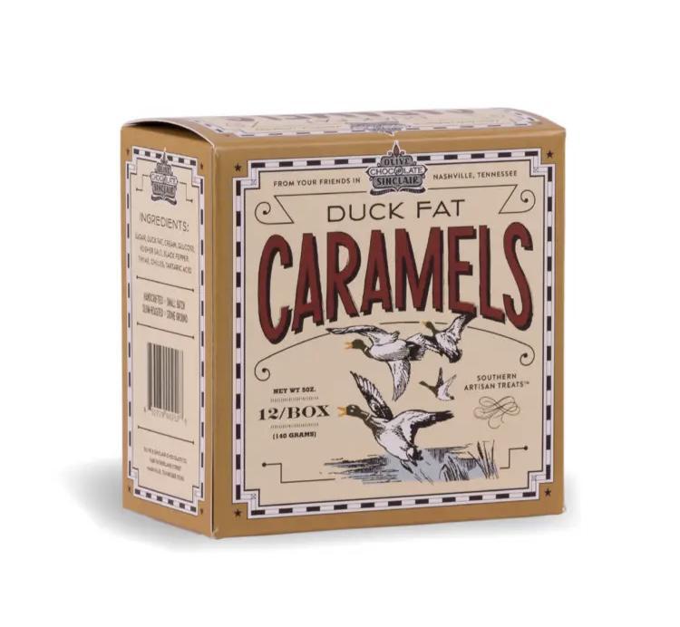 The original duck fat caramels were literally born behind the duck blind. This rooted American pastime inspires each batch of caramelized cane sugar and rich duck fat for a perfectly seasoned, mouthwatering caramel. Please enjoy this uniquely savory tasty treat, brought to you by your friends at Olive & Sinclair!