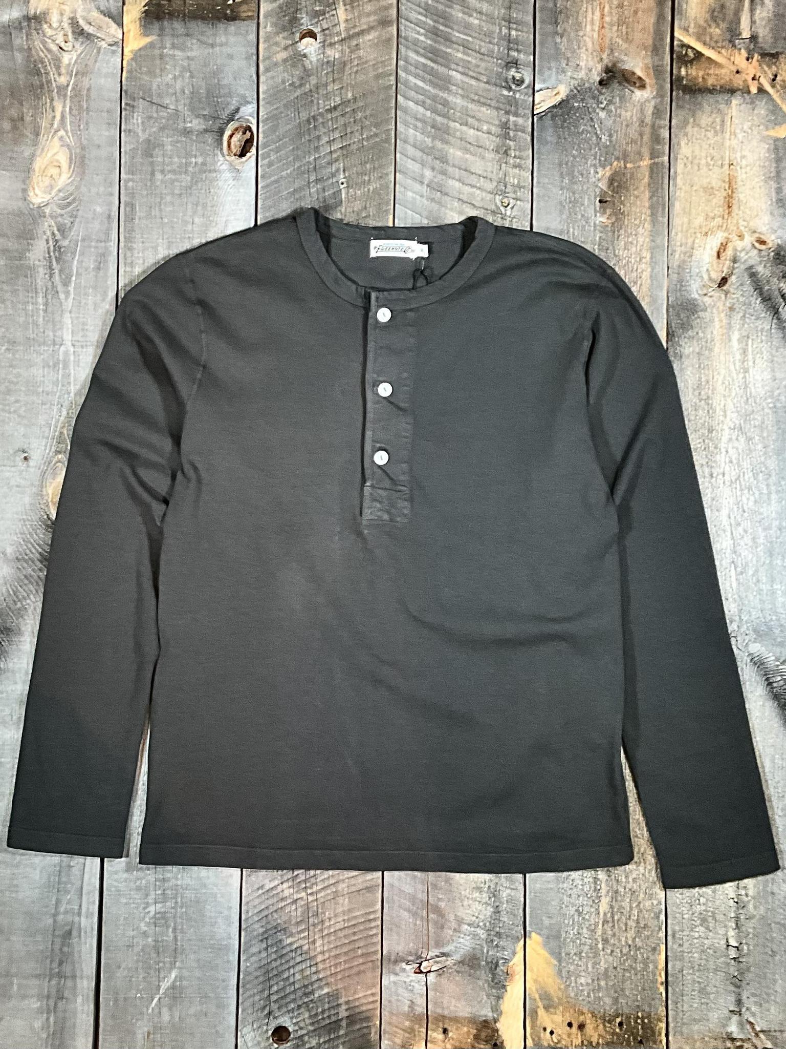 Expertly crafted with custom open ended 13 ounce knit from USA and flat lock seam construction, this Henley Long Sleeve offers superior quality and comfort. Features custom mother of pearl fisheye buttons from Italy and 1/8" double needle hems. Contrast chambray on interior placket, cotton binding from Japan, and a custom label made in Italy add the perfect finishing touches. Available in Small, Medium, Large, and X-Large, each piece is individually sewn in the USA. Made with 100% cotton, this Henley Long Sleeve is a must-have staple in any wardrobe.