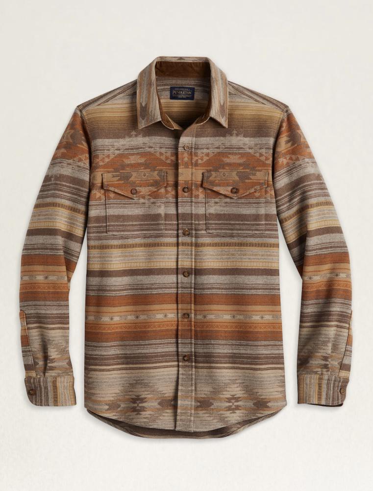 A men's wool shirt woven to perfection at our Pacific Northwest mills, for quality that lasts. Spread collar, two button-through flap-chest pockets, shirttail hem. Fitted silhouette is narrow in the shoulders, trimmer in the sleeves, with a slimmer fit through the waist and back.