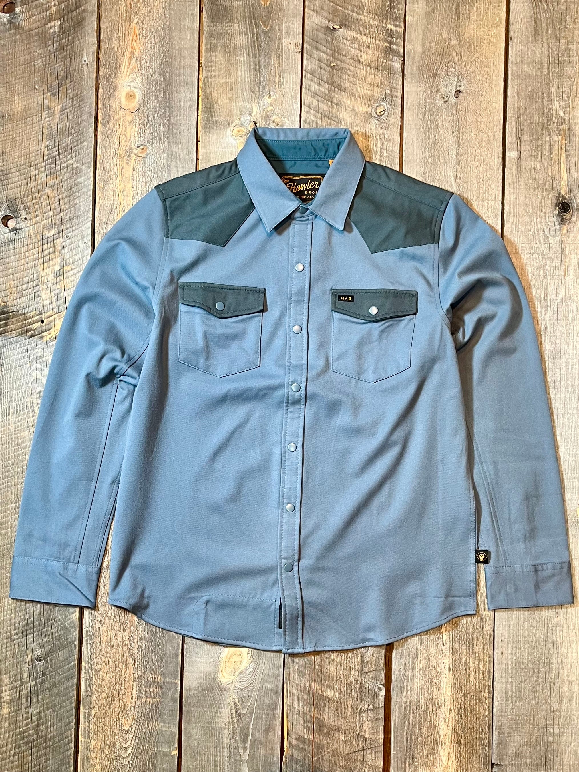 Unleash your inner cowboy with the Stockman Stretch Snapshirt. Made with a stretchy fabric, you'll have full range of motion while herding cattle. Featuring Howler's signature snap buttons and a built-in sunglass cleaner, this shirt is ready for any adventure. Yeehaw!