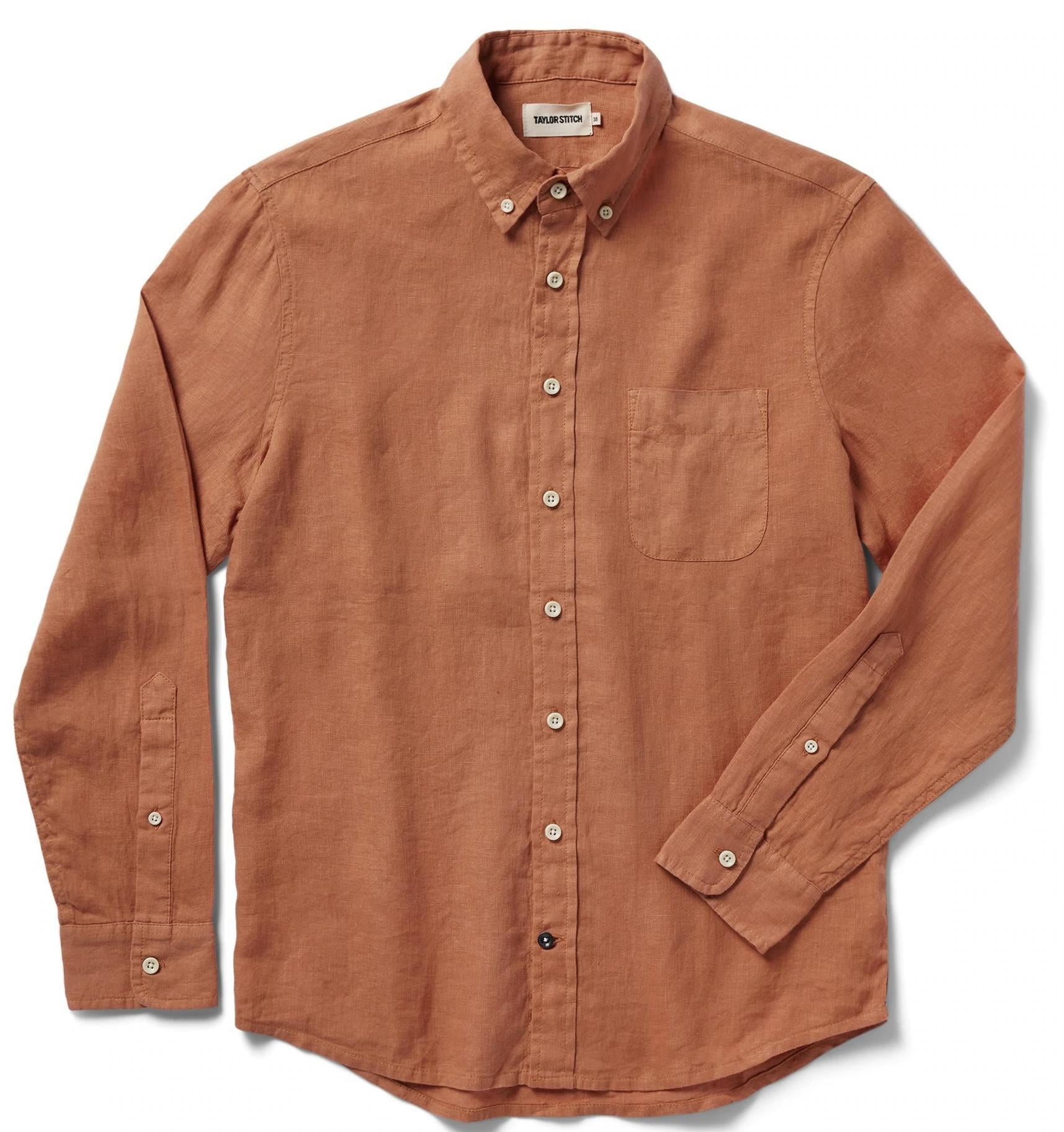With timeless style and the versatility to go from day to night, the Oxford shirt has been a trustworthy go-to for generations. So it should come as no surprise that the signature Oxford button down, The Jack, has held the Taylor Stitch shirting throne for well over a decade. And with this new 100% linen iteration, the king of their core roster just got a shiny new coat of paint that’s perfect for spring and summer, and sturdy enough for year round layering. They have finished off this warm Apricot variation with a garment dye and wash for a soft, lived in feel from the very first wear.
