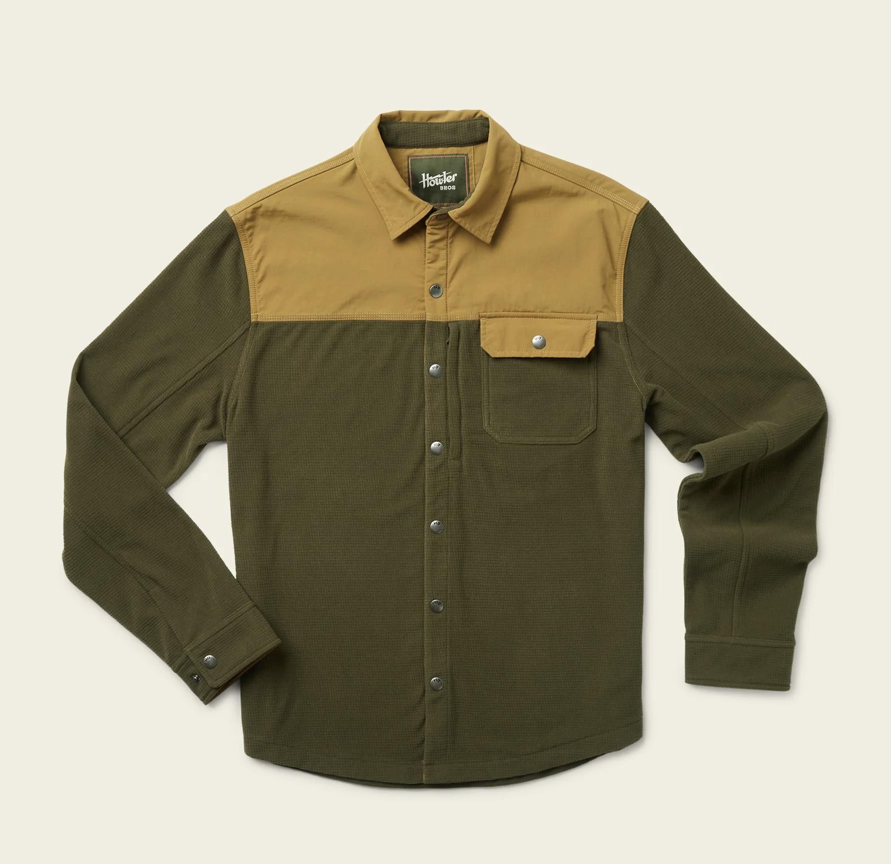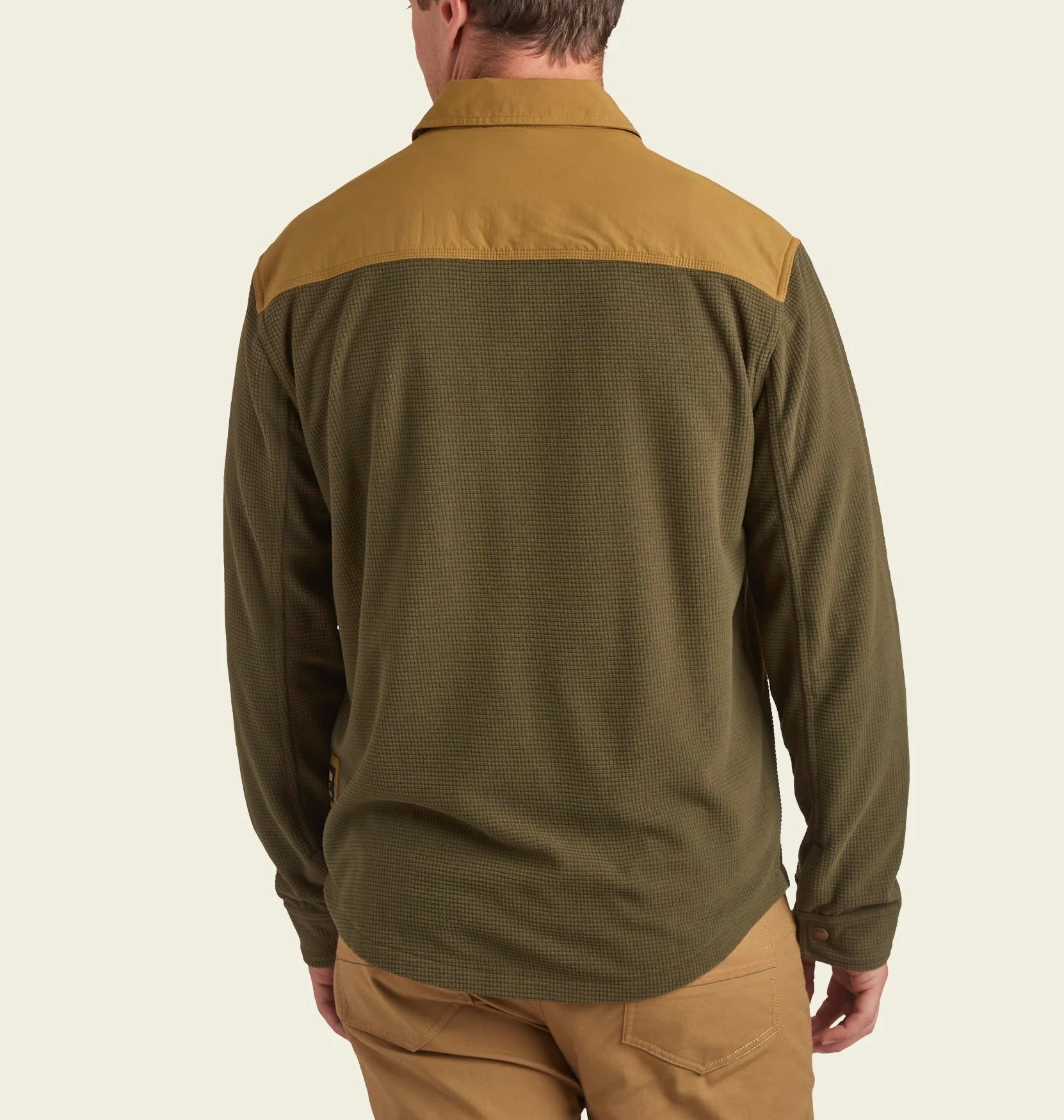 The Vapors Polarfleece Shirt is a favorite around Howler HQ because it toes the line between a shirt and a jacket. It's perfect for the cool snaps we get here in Texas but it also becomes a perfect layer when we are hitting full Rocky Mountain cold. Made of midweight grid fleece with a tonal nylon front and back yoke and single snap front pocket.
