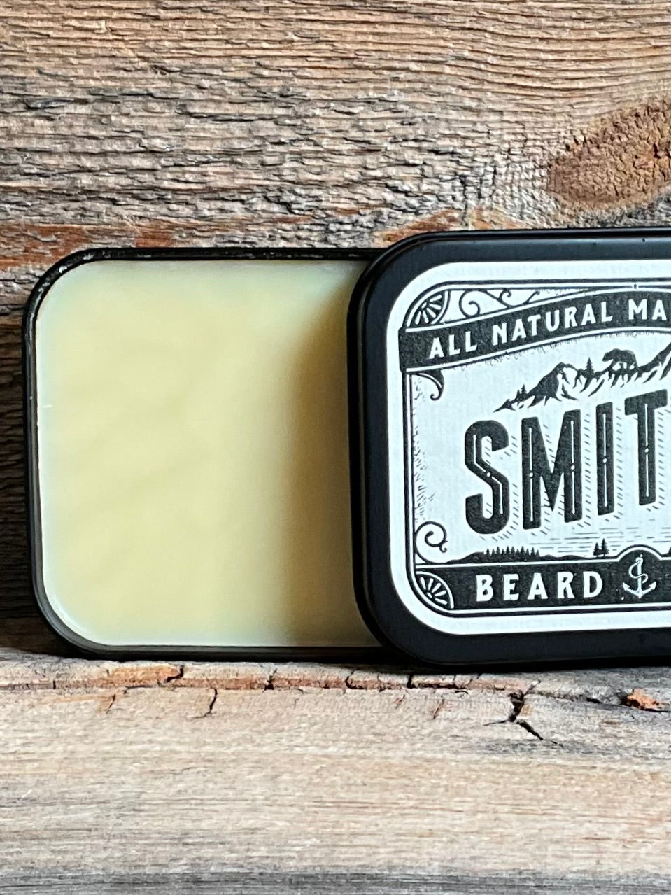 Introducing Smith's Beard Balm, crafted with organic cocoa butter, beeswax, and pure sweet almond oil. No more waxy or greasy beard products, just a light scent of dark chocolate and nutty almond. Nourish and strengthen the skin beneath your beard with this hand poured, organic formula in every jar.