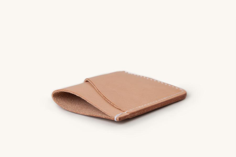 Cut from one lightweight piece of 3oz Skirting leather, the wear characteristics are similar to Natural Tooling, so it will patina to your personal journey. The Card Holder features one central pocket with an angled card slot cut into the leather.