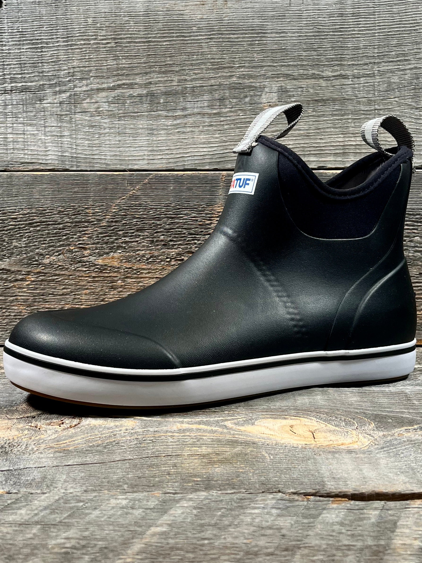 The Ankle Deck Boot collection has been crafted specifically for off-shore anglers. Anglers are athletes, and like any athlete they demand the best footwear to help them perform at a high level. We've created a lightweight design with the same slip-resistant Chevron outsole found on our Legacy boots. The 6" ankle deck boot is a great option for any on-the-water athlete looking for protection with slip-on-and-go styling. This boot is constructed with hand-layed rubber, and so not classified as a commercial grade boot. For those looking for a commercial grade ankle height deck boot please search for the Wheelhouse Boot.