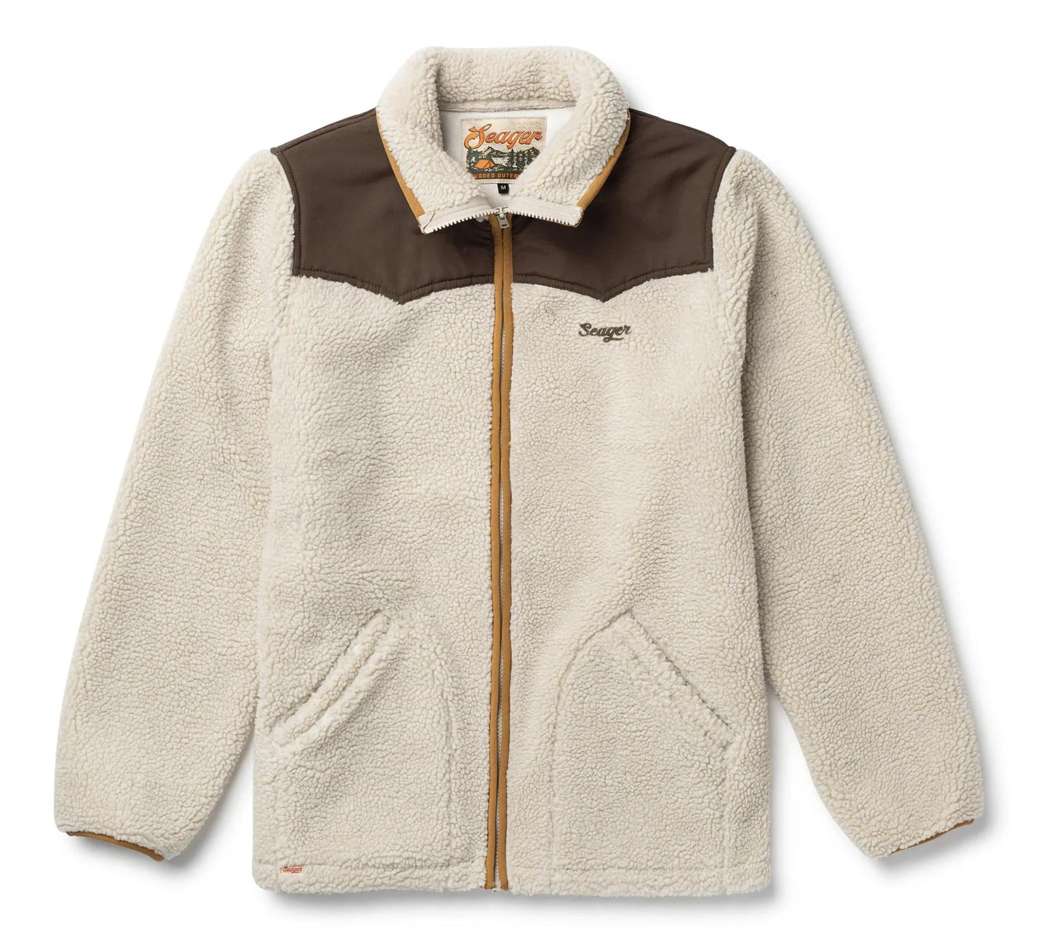 Easily able to zip up high for when the weather calls for it and loaded with signature Seager details, such as an upper western yoke with water repellent nylon, we're certain this 100% sherpa jacket will be your go-to grab from your closet.