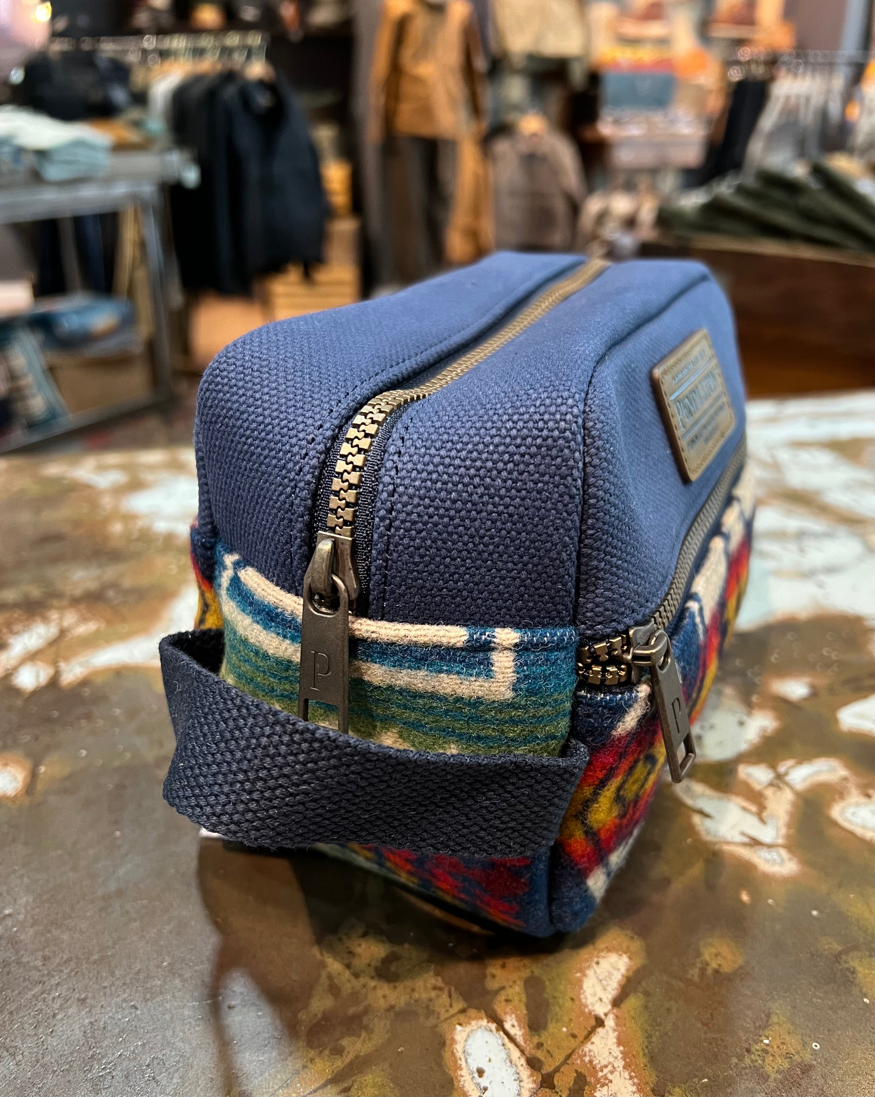 The perfect carryall pouch made of durable cotton canvas and virgin wool woven in the USA. Equipped with zipper closure, exterior zip pocket and convenient side handle in the Century Harding pattern. Pattern placement may vary.