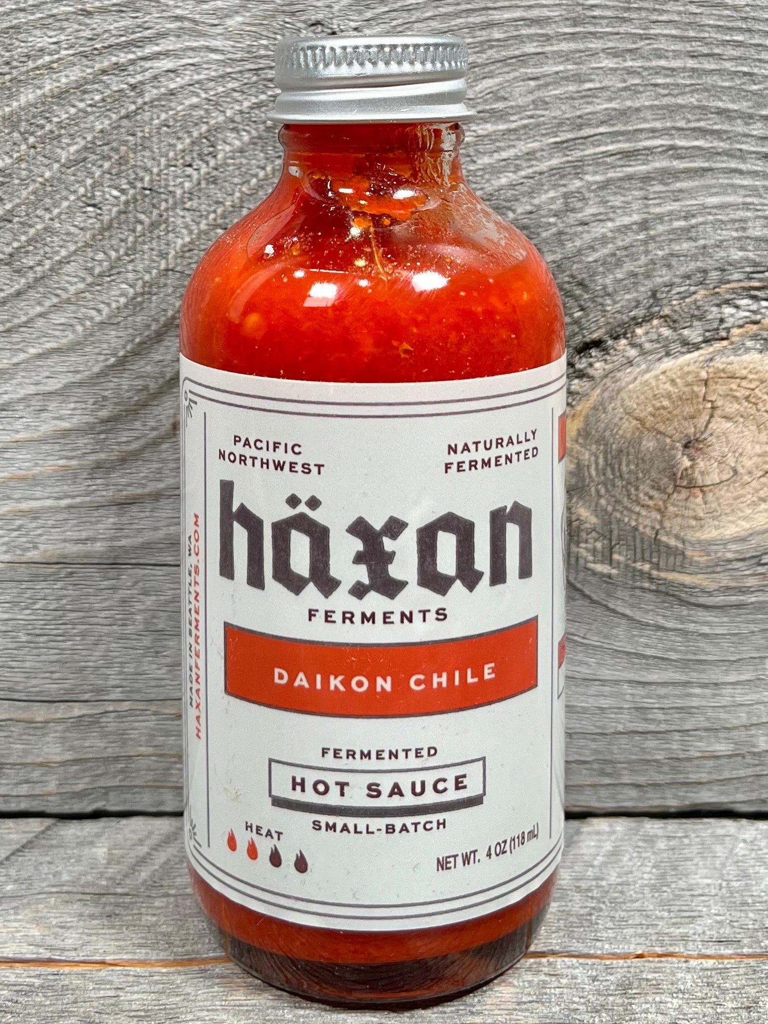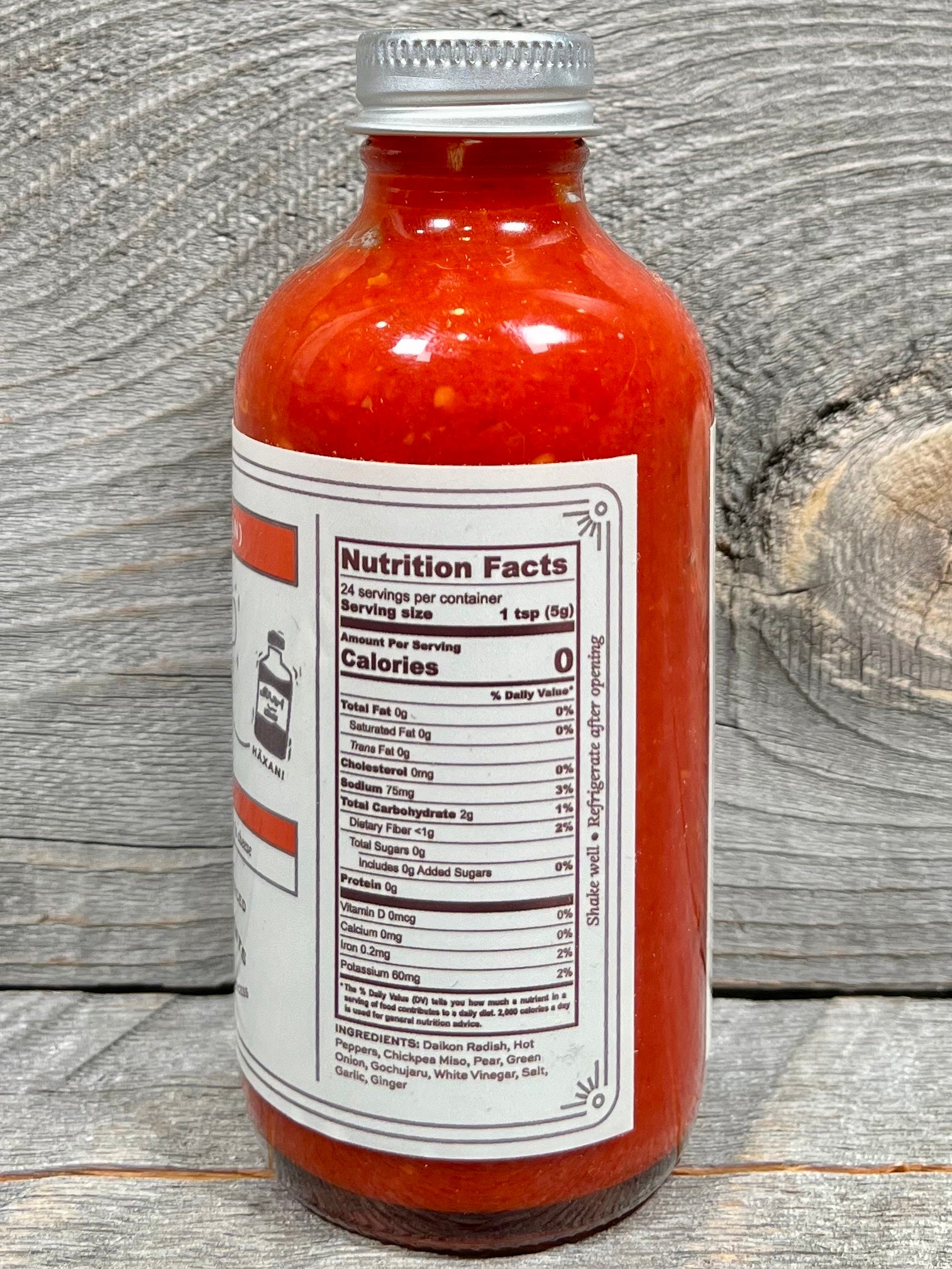 Spice up your dishes with the Daikon Chile hot sauce! Made with daikon radish, hot peppers, and other natural ingredients, this fiery condiment adds a kick to any meal. Perfect for those who love to take risks in the kitchen. Grab yours now!