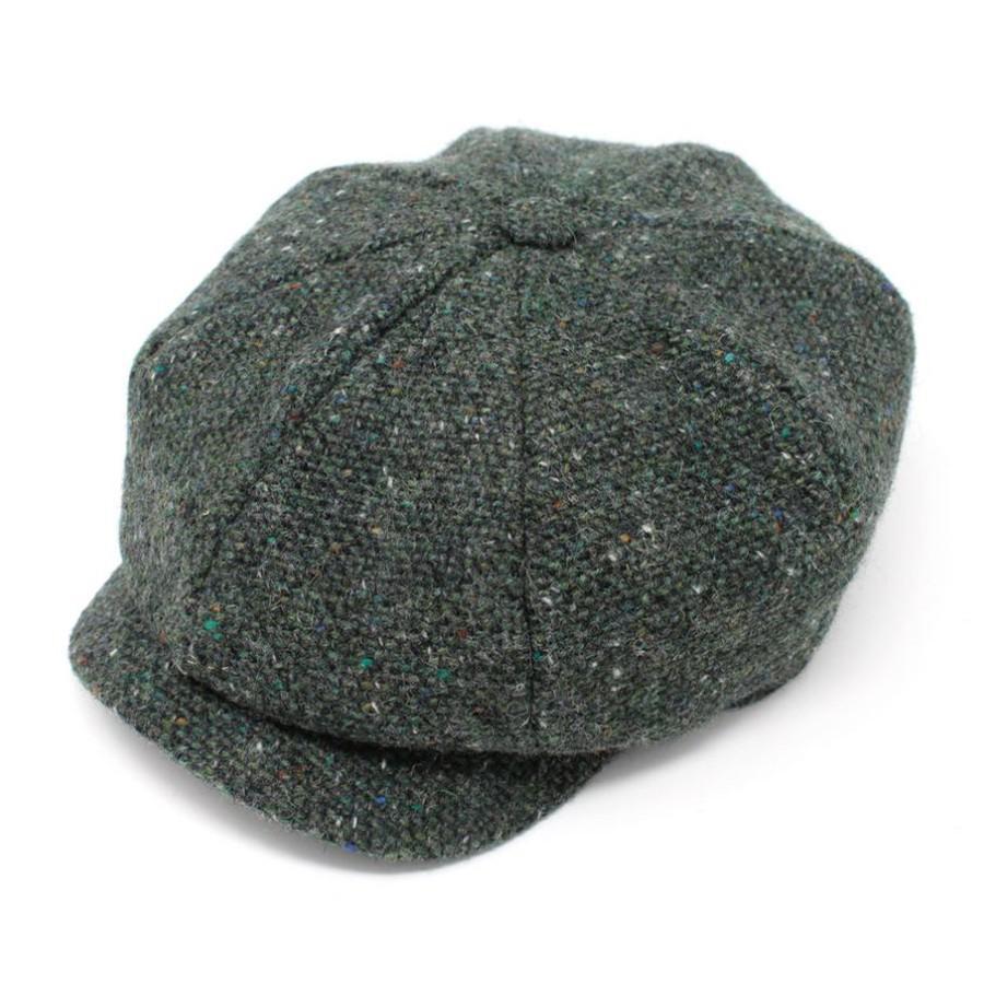 Created in 2018, the JP cap quickly became one of our most popular styles. Suitable for all genders, this style is made up of eight panels, similar to the eight piece cap, but with a more tailored fit and a longer curved peak. Named after a third generation Hanna, this cap is made from luxurious Irish and Harris tweeds which reflect the colours of our local Donegal landscape.