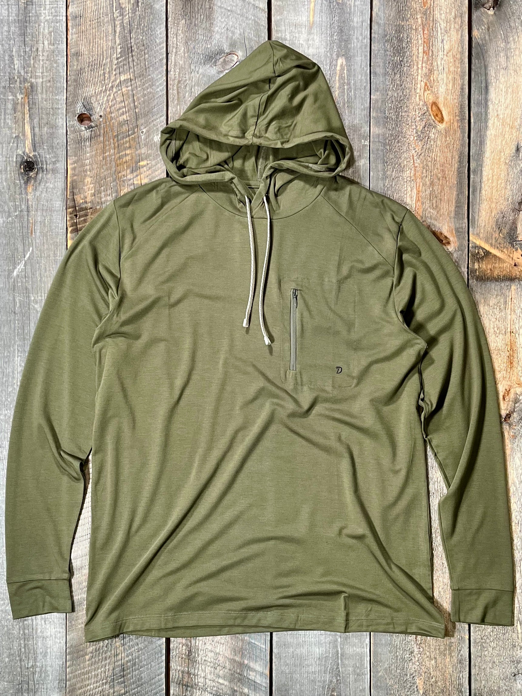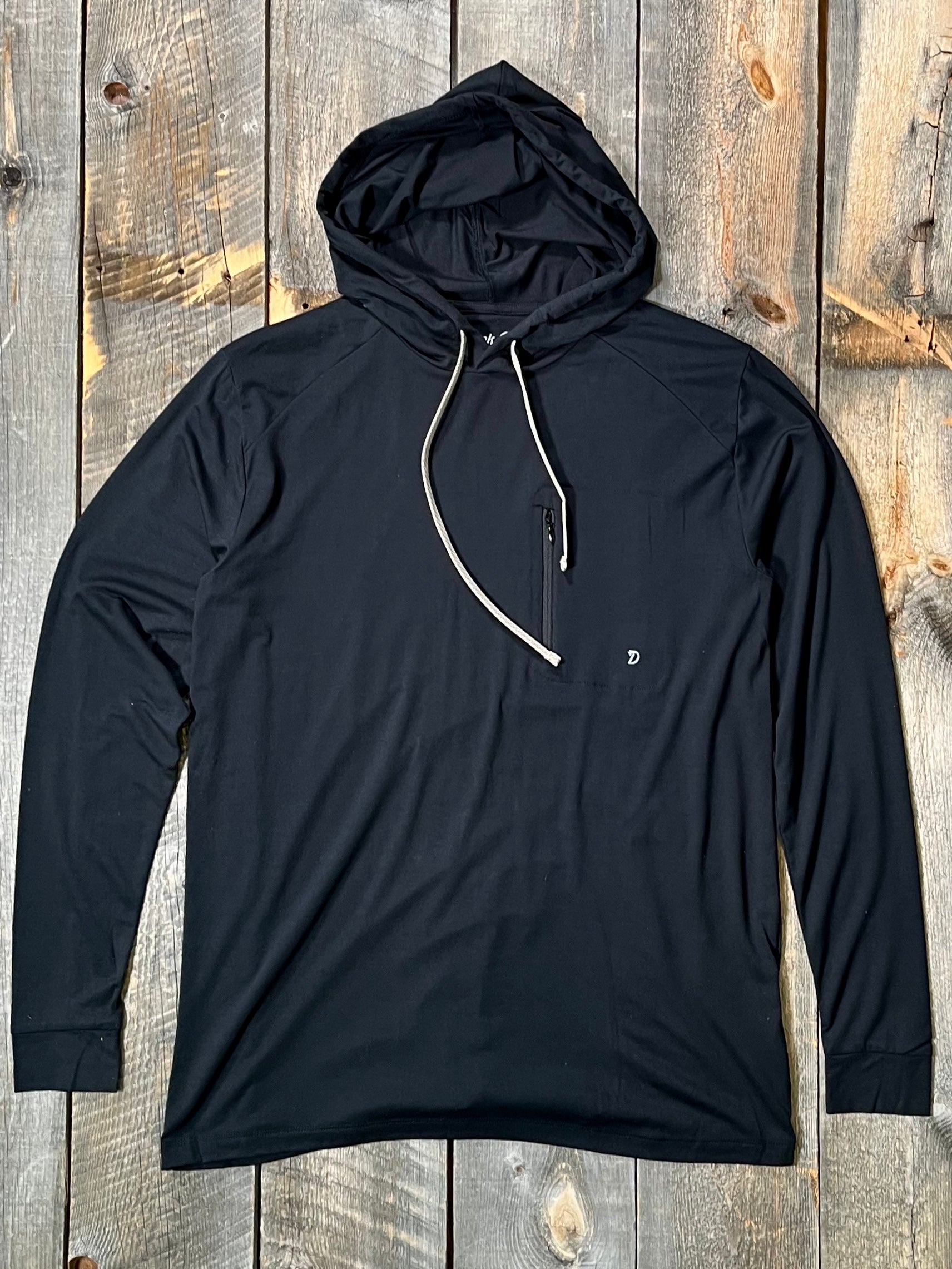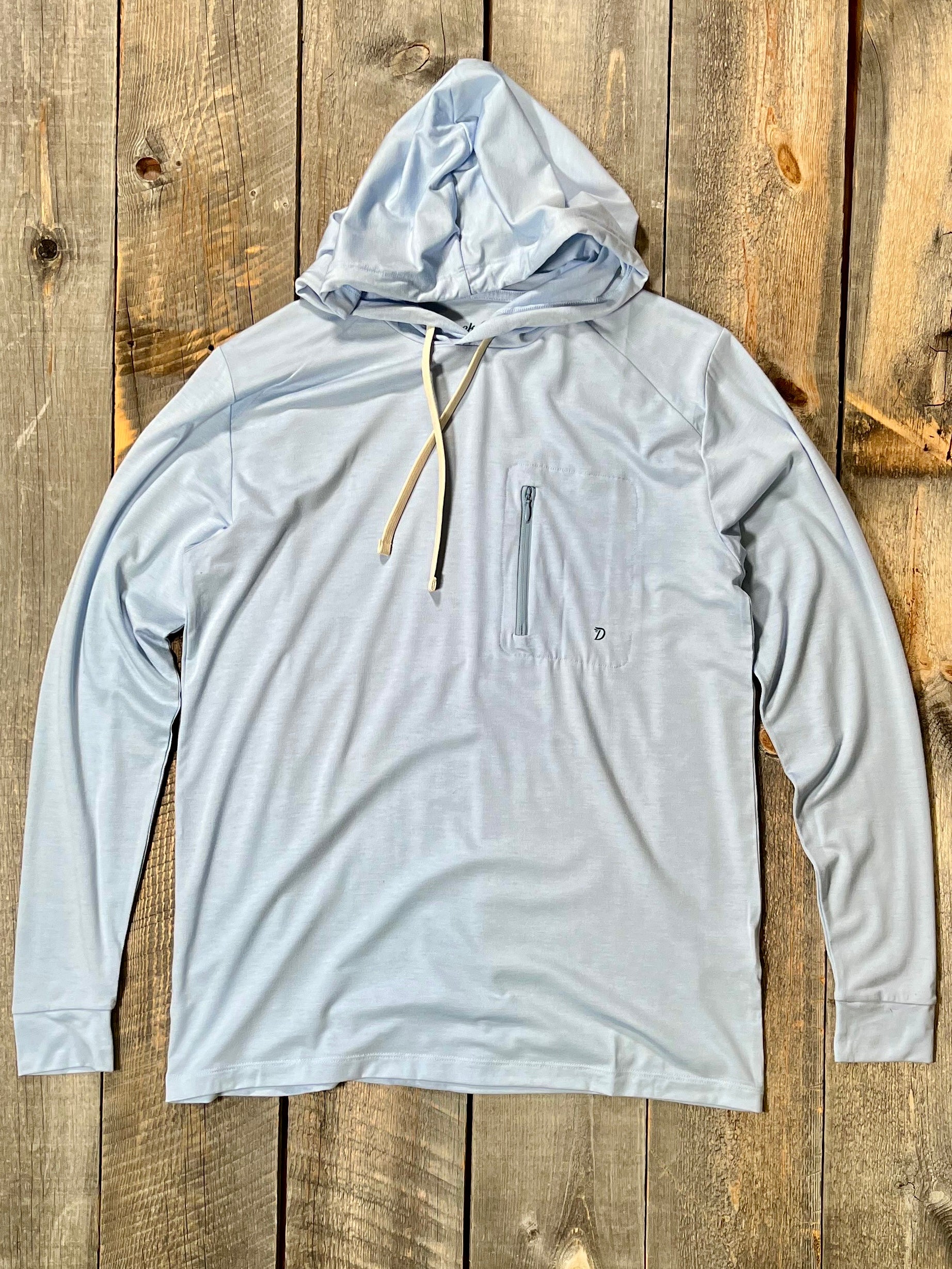 Take on any adventure with the Lightweight Bamboo Hoodie by Duck Camp! Made with a soft and comfortable performance blend of Polyester, viscose from bamboo and Spandex, this hoodie features an articulated hood with drawstrings and a convenient chest pocket. With UPF20+ sun protection and moisture wicking capabilities, you can be sure to stay protected and comfortable on your daring journeys.