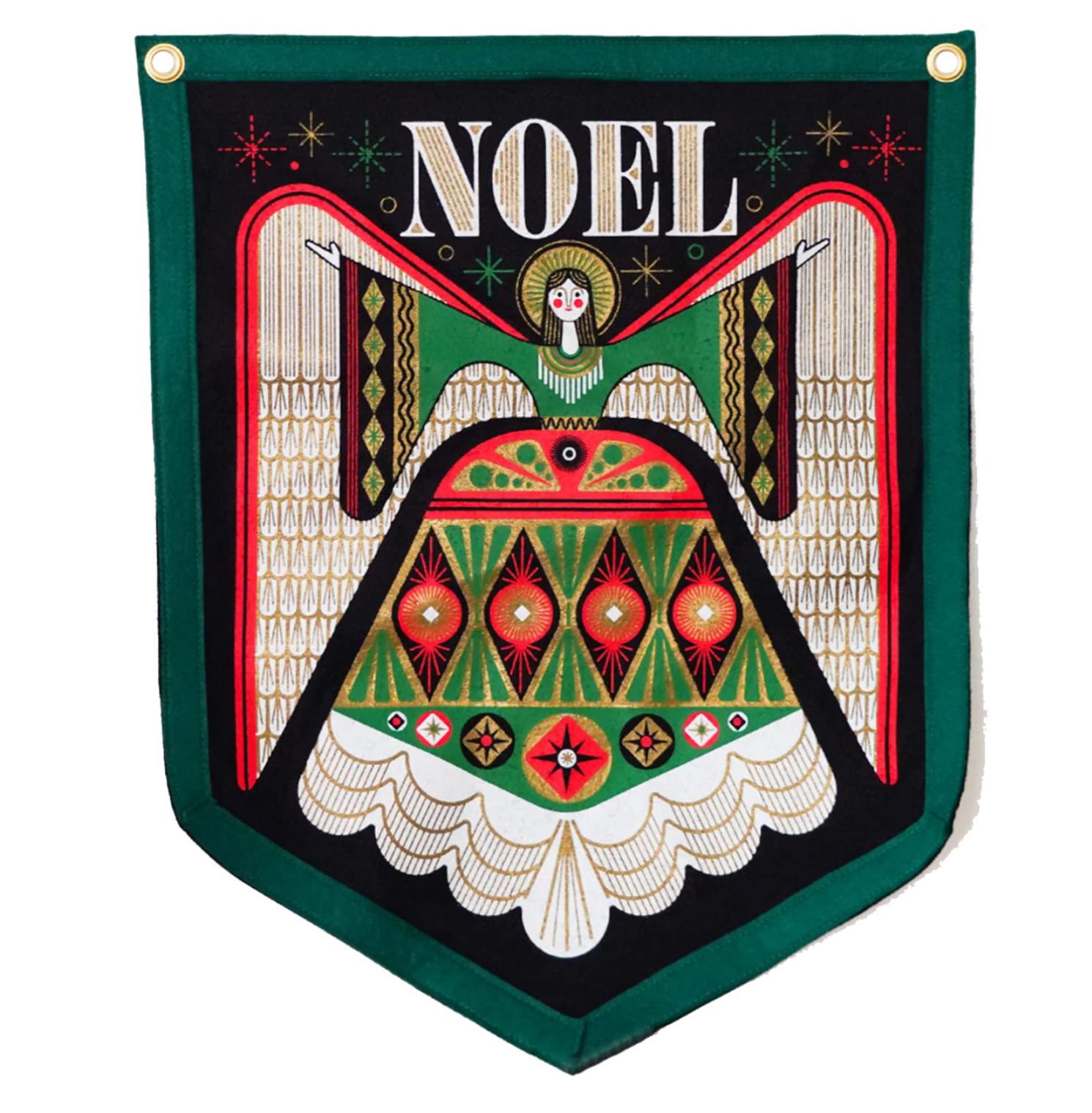 See the angel proclaim the good news to the poor shepherds on this festive camp flag, designed by Invisible Creature.