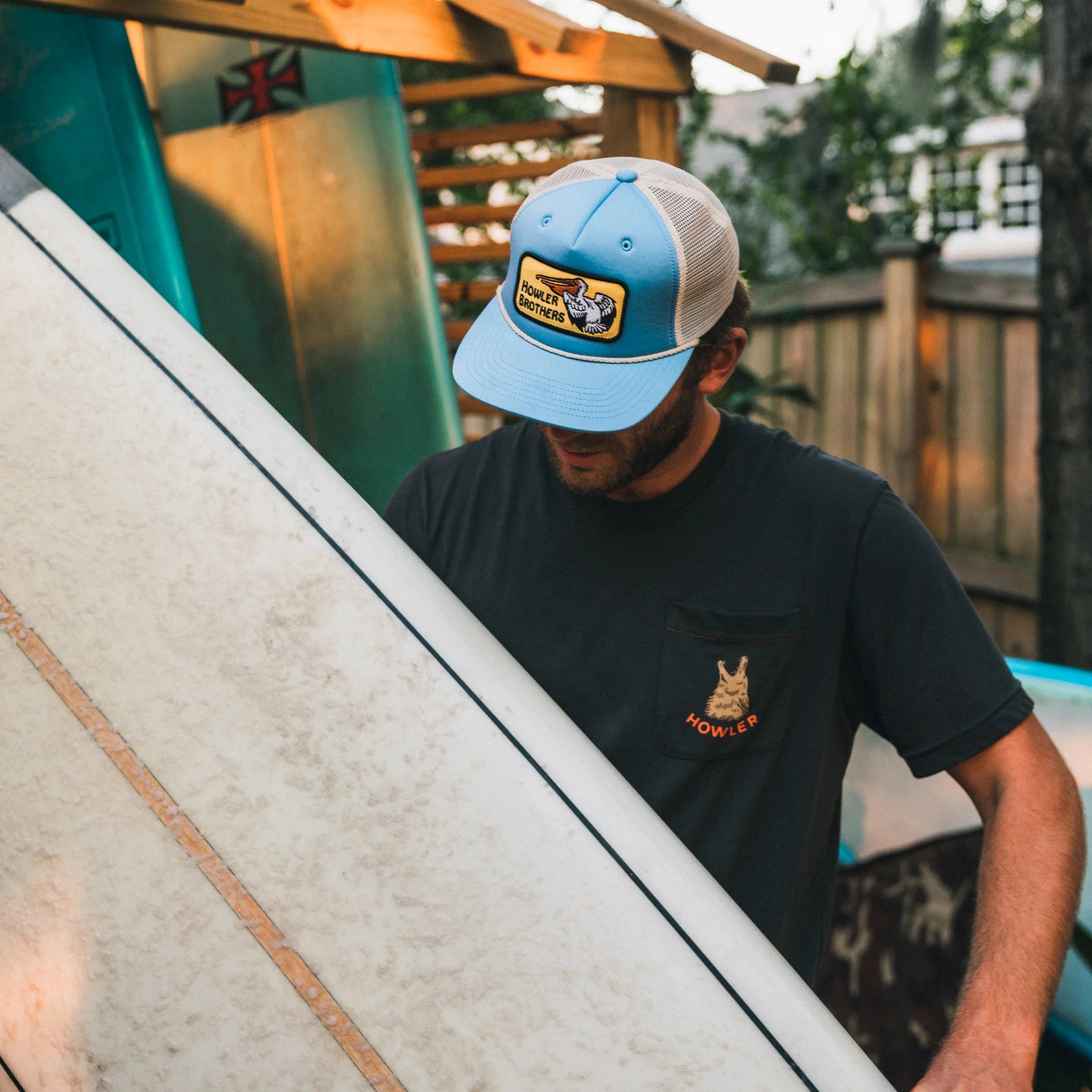 Our Snapbacks run a bit larger and feature a taller crown than our standard mesh back hats. The pliable flat brim features a glare cutting navy under side, and is fully shapeable for a custom fit. Howler monkey icon tag on the back left. Snap back closure.