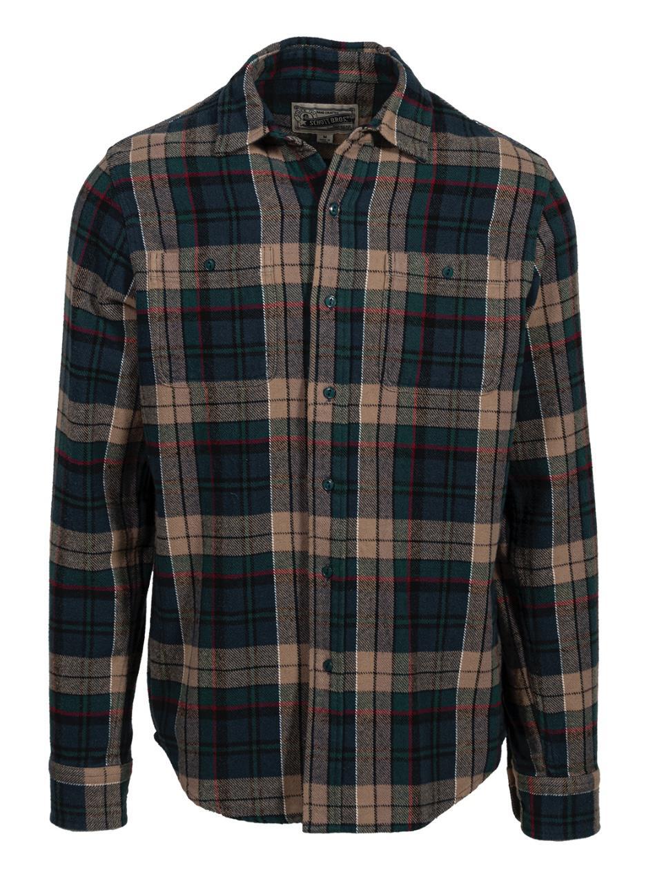Plaid Cotton Flannel Shirt - Tan Navy