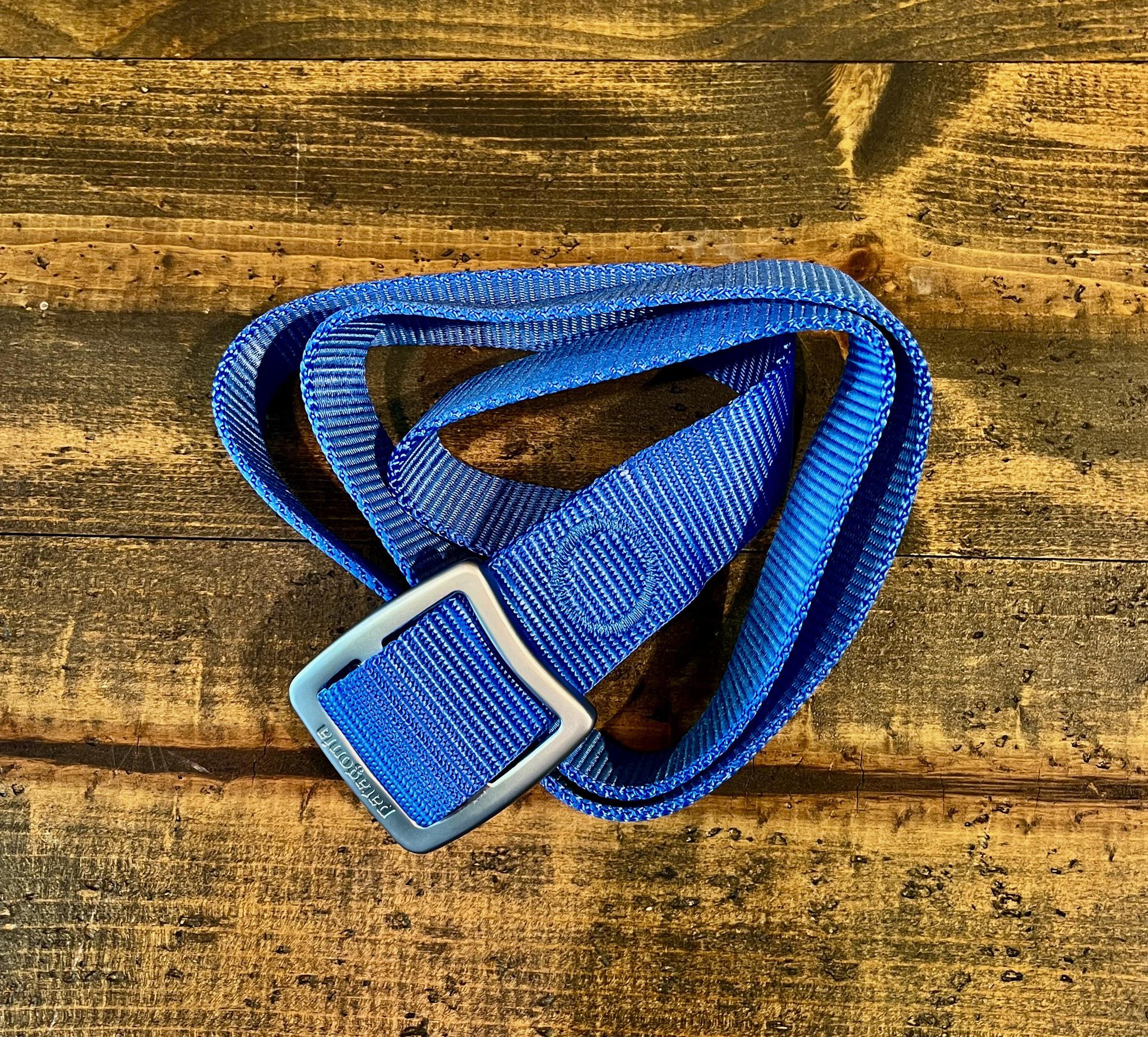 1½" 100% recycled nylon webbing with a forged aluminum buckle