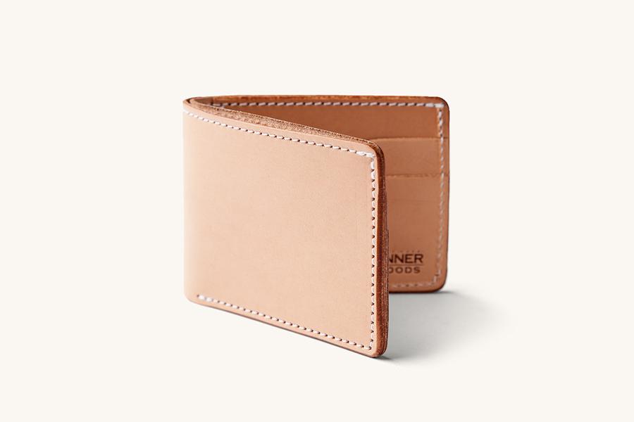 Constructed from 3.5oz. Natural tooling leather, the Utility Bifold features four card-slot pockets, two hidden pockets, and one lengthwise pocket for bills. Each wallet is burnished, dyed, waxed, and stamped with our signature maker's mark.